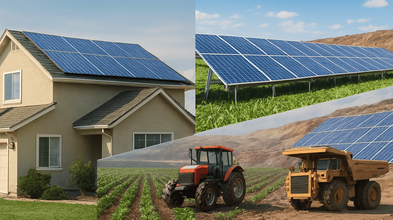 A smart, scalable solution designed to optimize solar energy usage across households, farms, and mining operations. This system ensures efficient energy generation, storage, and distribution—reducing reliance on the grid while maximizing cost savings. For homes, it powers daily appliances with clean energy. On farms, it supports irrigation, lighting, and machinery. In mining, it delivers reliable off-grid power for remote operations. With real-time monitoring and intelligent load balancing, it empowers sustainable growth across sectors.